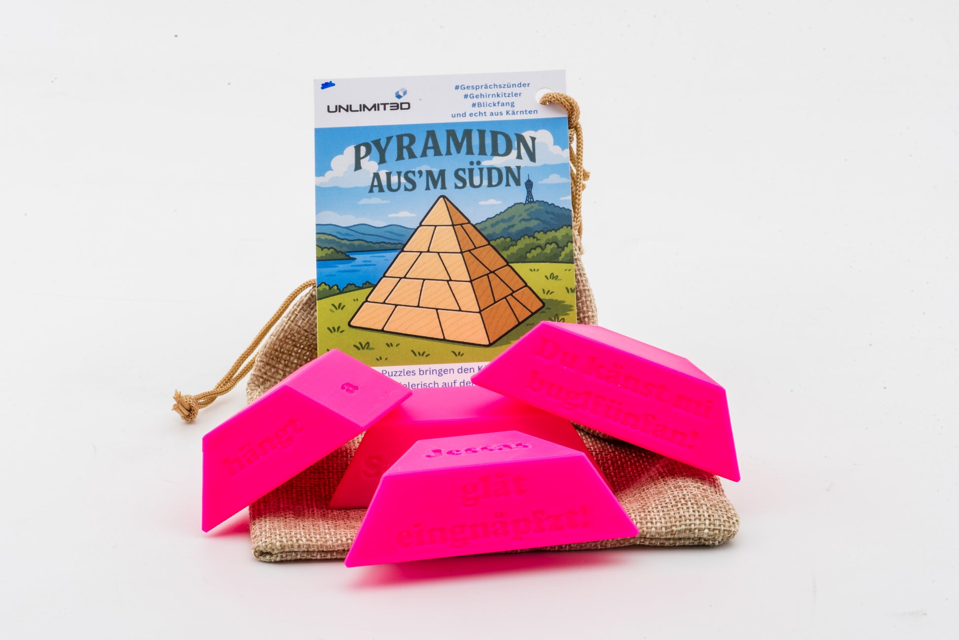 Discover the charm of Carinthia with this 4-piece pretty pink pyramide puzzle! Four parts - one pyramide.